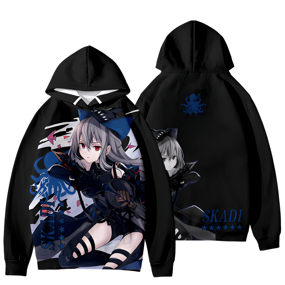 Anime Arknights Skadi Pullover Hoodie: Show your love for Arknights with this stunning Skadi Pullover Hoodie. Made with high-quality polyester, it offers comfort and style while featuring a dynamic 3D print. Whether you’re lounging or out with friends, this hoodie adds a unique touch to your wardrobe. With sizes ranging from XS to 4XL, it’s designed to fit every fan perfectly.