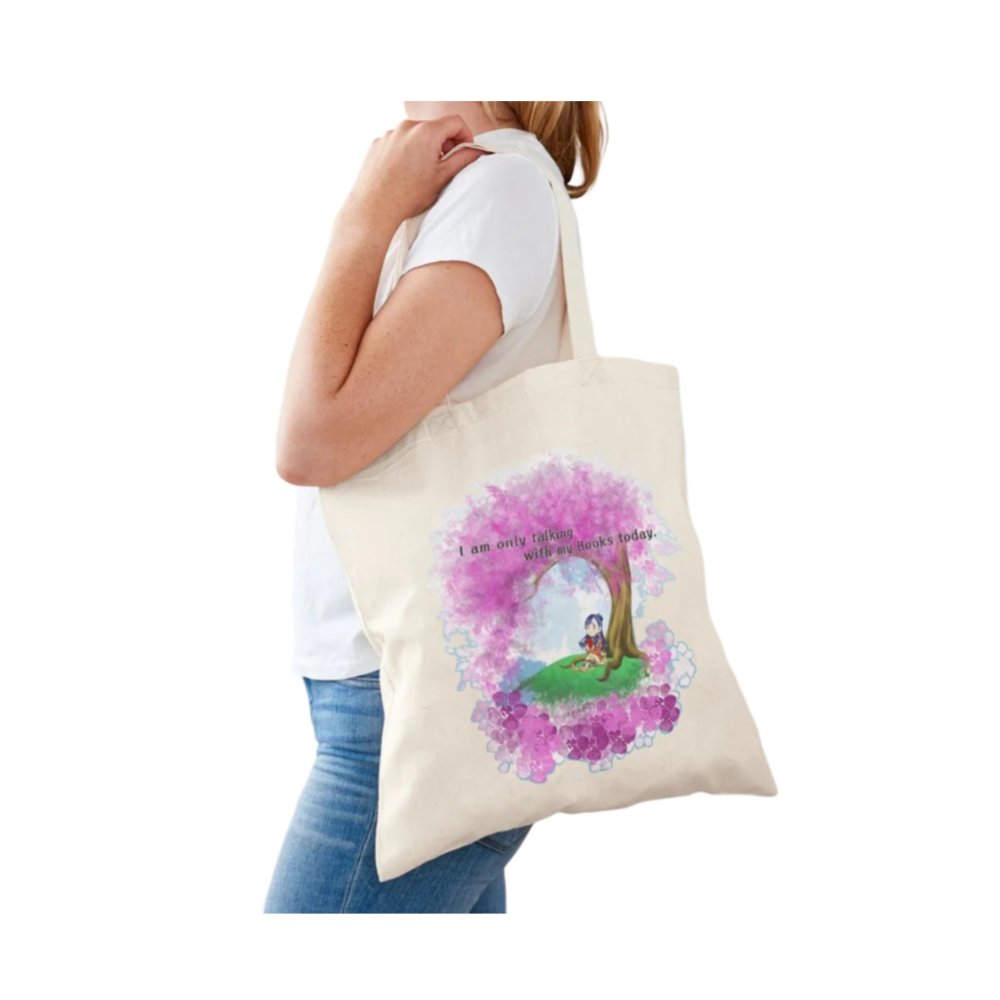 I Am Only Talking To My Books Today Ascendance Of A Bookworm Tote Bag: For all the book lovers who’d rather lose themselves in the pages of a good story than engage in small talk—this “I Am Only Talking To My Books Today” tote bag is made just for you! Inspired by Ascendance of a Bookworm, this stylish and durable bag is perfect for carrying your favorite novels, library hauls, or everyday essentials. Let the world know where your priorities lie—books first, always!
