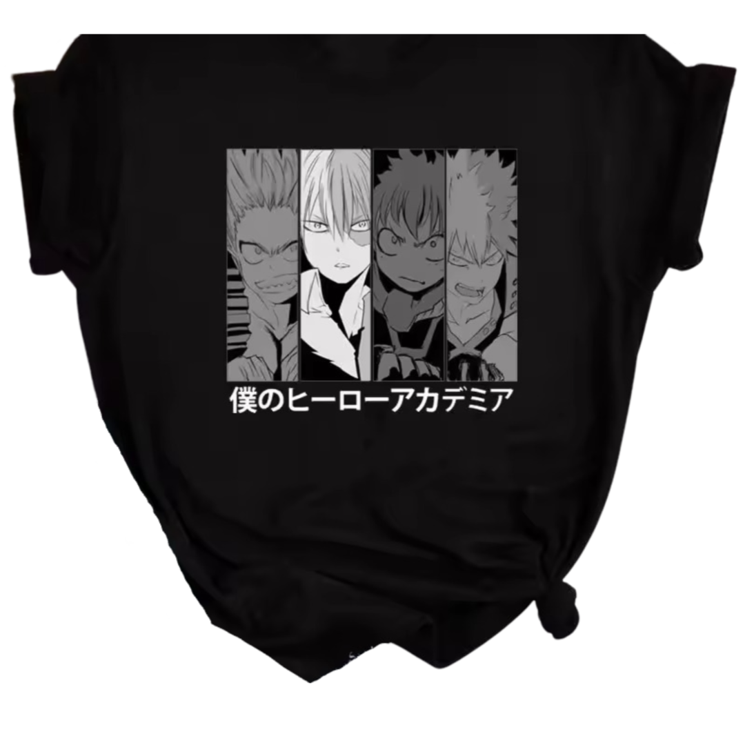 My Hero Academia Character Anime Black T-Shirt: This My Hero Academia Character Anime Black T-shirt is a must-have for fans of the popular series. Featuring your favorite characters from the show, this black T-shirt is made from soft polyester material for a comfortable and breathable fit. Whether you’re out with friends or at an anime convention, this stylish shirt lets you proudly display your love for My Hero Academia. Available in sizes S to 3XL, it’s designed to suit a wide range of body types.