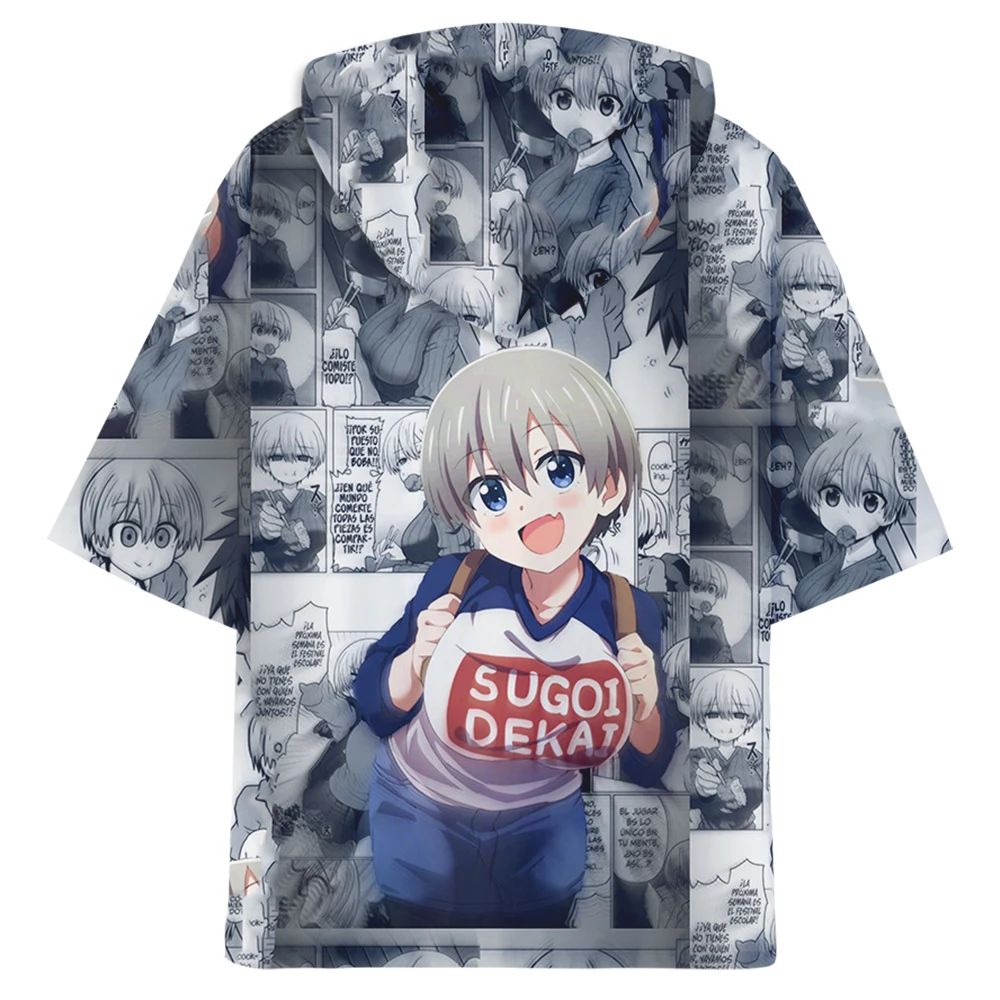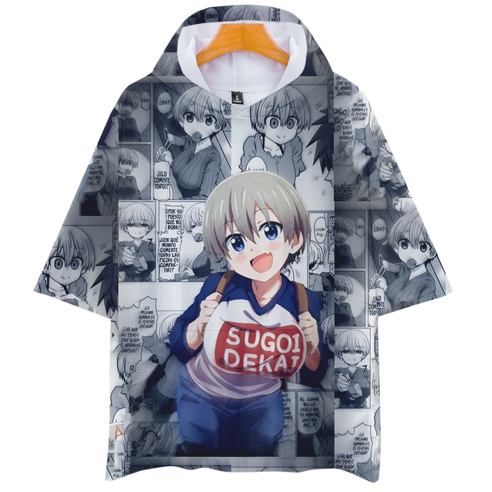 Uzaki-Chan Wants To Hang Out Anime Hana Short Sleeve Hoodie: Step into the world of Uzaki-Chan Wants To Hang Out with this stylish Hana short-sleeve hoodie! Made from lightweight polyester, it ensures breathability and comfort for daily wear. Featuring a vibrant anime print, this hoodie is perfect for fans who love casual and trendy outfits. Available in sizes XXS to 4XL, it’s a must-have for anime lovers.