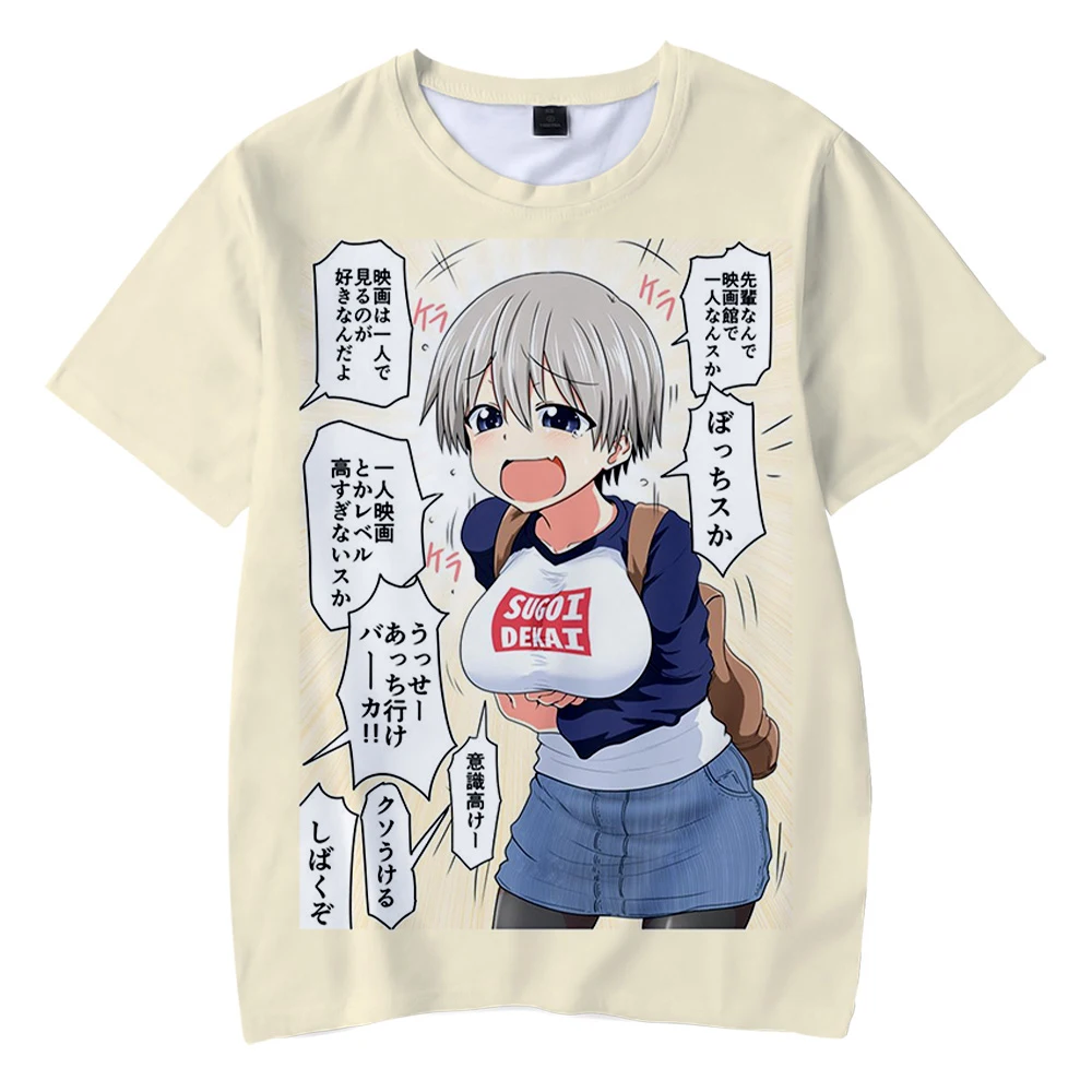Uzaki-Chan Wants To Hang Out Hana Uzaki Anime 3D Print T-Shirt: Show off your love for “Uzaki-Chan Wants To Hang Out” with this stylish 3D print T-shirt featuring Hana Uzaki. Made from high-quality polyester, it offers a soft, breathable, and comfortable fit. Designed for both men and women, this O-neck, short-sleeve tee is perfect for casual wear. Available in multiple sizes from XXS to 4XL, it ensures a great fit for everyone.